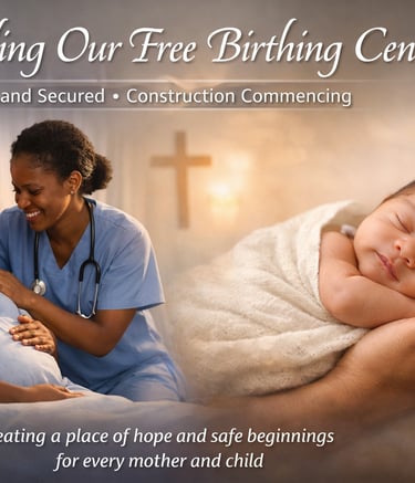 Our mission is to build a free birthing center on newly acquired land, with construction now commencing, as a tangible expression of God’s love and compassion for pregnant women. Guided by faith and a commitment to service, we seek to ensure that no woman is denied safe, dignified maternal care due to financial hardship. This center will provide essential services, including: